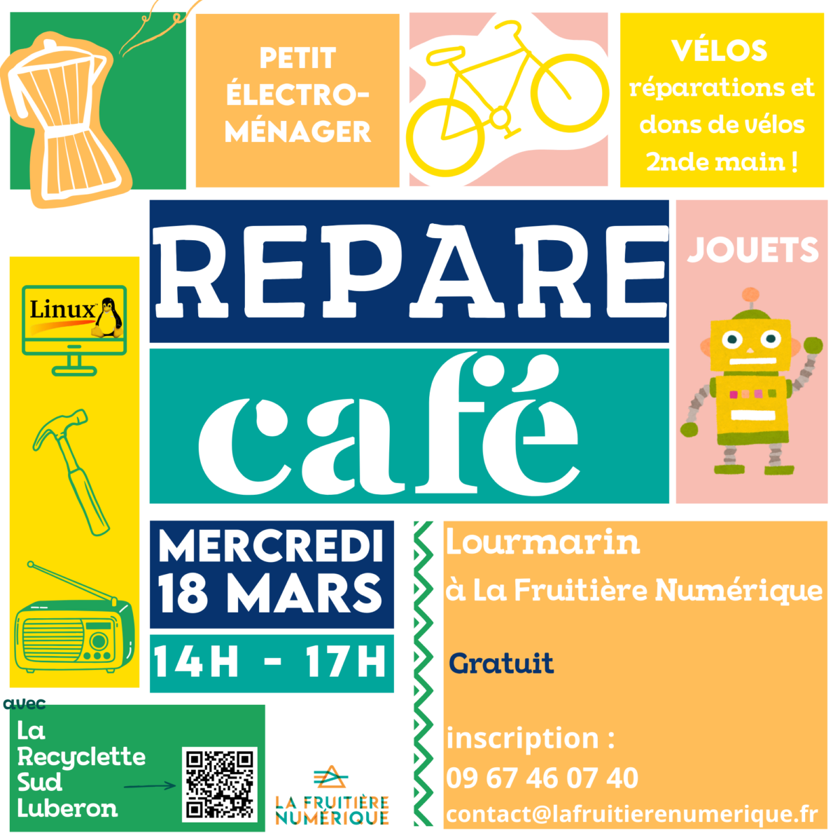 - Réparation de vélos, petit électro-ménager et jouets